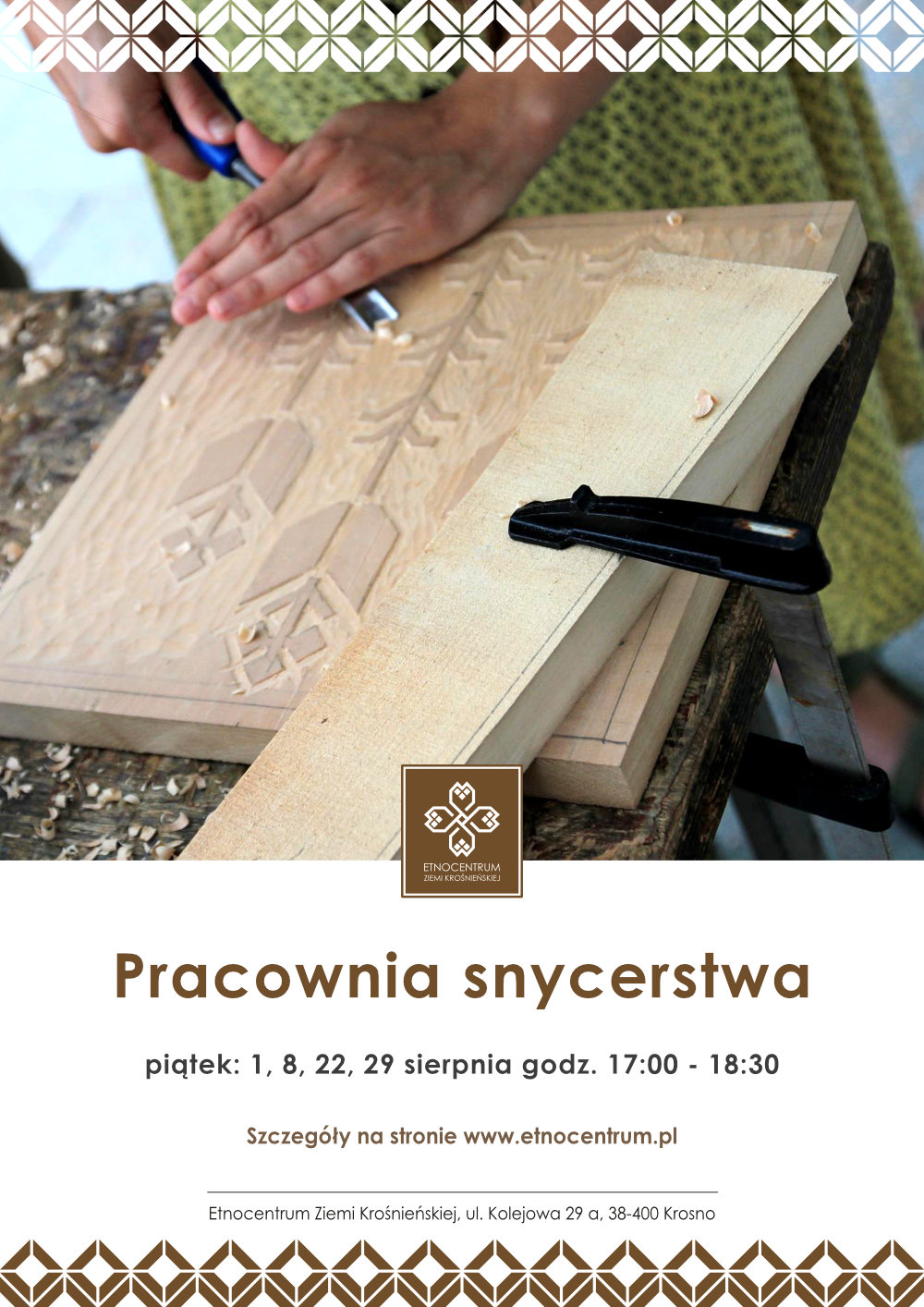 -> Pracownia snycerska – piątki o 17:00 (1, 8, 22 i 29 sierpnia) - zajęcia dla dorosłych