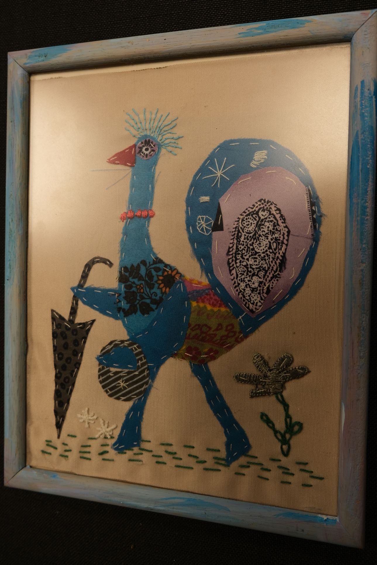 „Robótki ręczne, malowanie, rysowanie sprawiają mi radość. Robię to co kocham, a wiek mnie nie ogranicza. Wystawa moich prac to obrazy malowane tkaninami, to moja wyobraźnia, moje pomysły. Każdy czas, pora jest dobra by coś zmienić, robić coś nowego.”