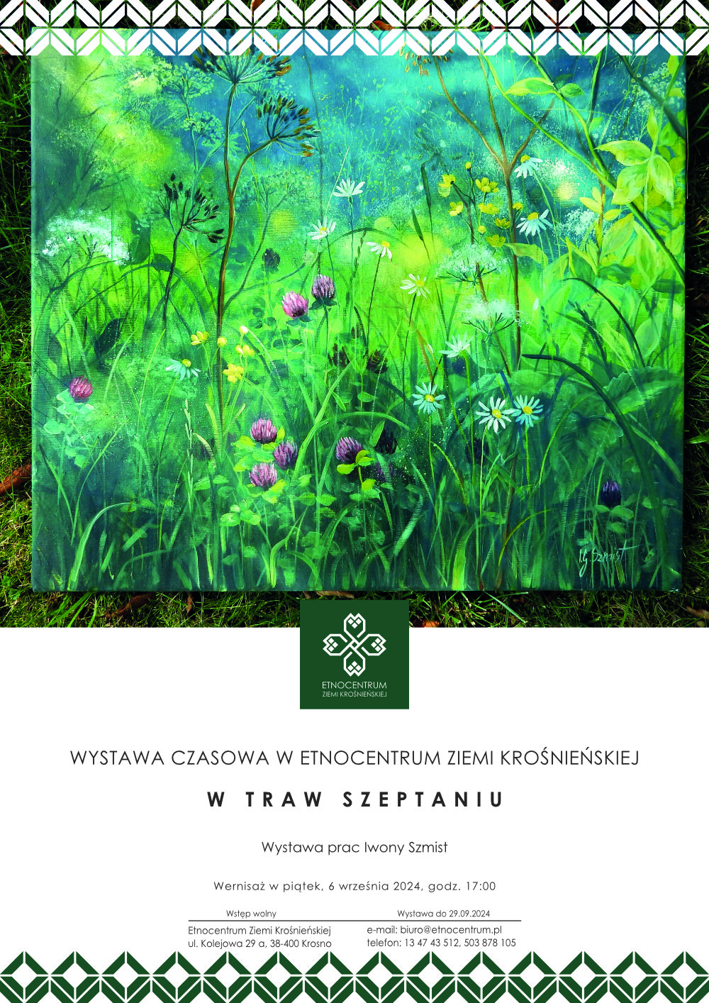 Jeszcze lato ale i już jesień, tak możemy określić wrzesień. Wciąż ciepłe promienie wrześniowego słońca zapraszają do spacerów, podczas których możemy obserwować całą gamę kolorów zmieniającej szatę przyrody. Jeśli jednak zmienna pogoda pokrzyżuje wasze spacerowe plany, to w Galerii wystaw czasowych Etnocentrum możecie wsłuchać się w szum traw i obejrzeć bogactwo dzikorosnących roślin, odwiedzając wystawę prac Iwony Szmist.