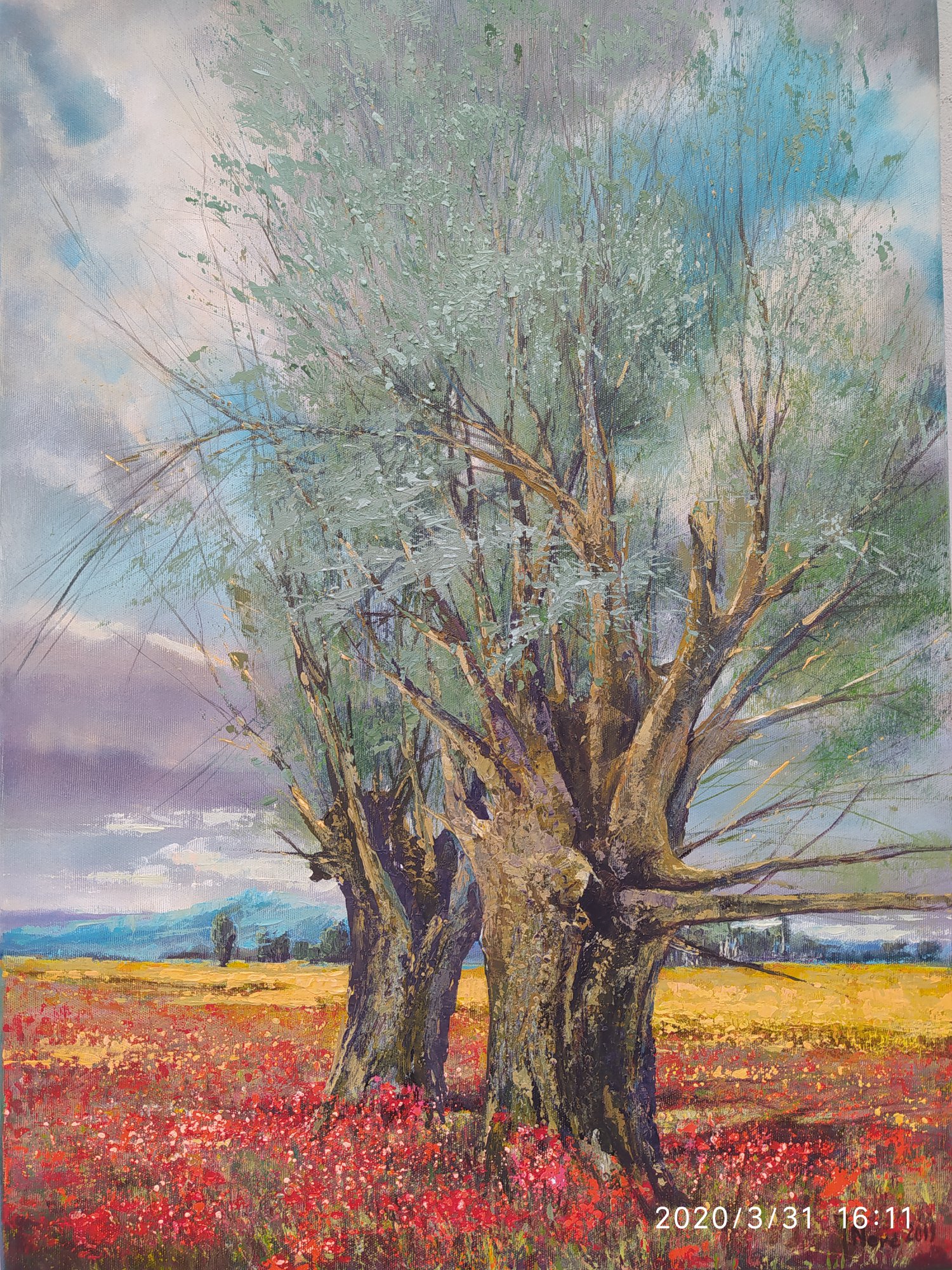 Głównym, choć nie jedynym, tematem obrazów malowanych w technice akrylowej jest pejzaż porośniętych wierzbami rozlewisk, charakterystyczny dla miejsca urodzenia artysty.